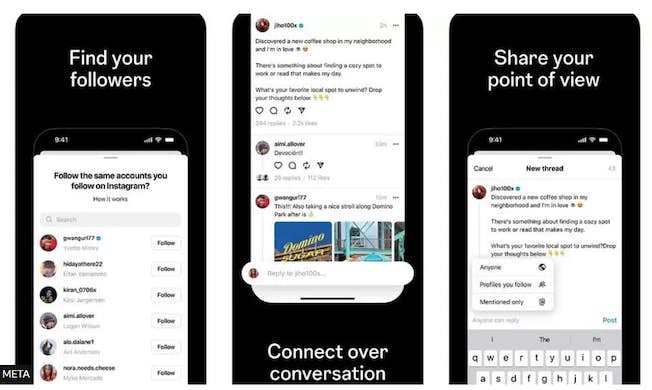 أطلقت Meta تطبيقًا لمنافسة Twitter ومواجهة Elon Musk يسمى "الخيوط". حديثًا إلى السوق في يوليو 2023 ، من المتوقع أن يكون للخيوط إحساس مشابه لتويتر ولكن تم وصفه بأنه "تطبيق المحادثة المستند إلى النص في Instagram" ، مع لقطات الشاشة التي تشير إلى أن المستخدمين سيكونون قادرين على استخدام تفاصيل تسجيل الدخول الخاصة بهم على Instagram للتسجيل.