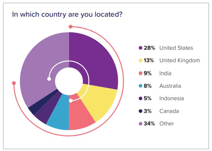 شمل الاستطلاع قادة التجزئة من الولايات المتحدة والمملكة المتحدة والهند وأستراليا وإندونيسيا وكندا ، مع 34٪ من المشاركين من مواقع أخرى.