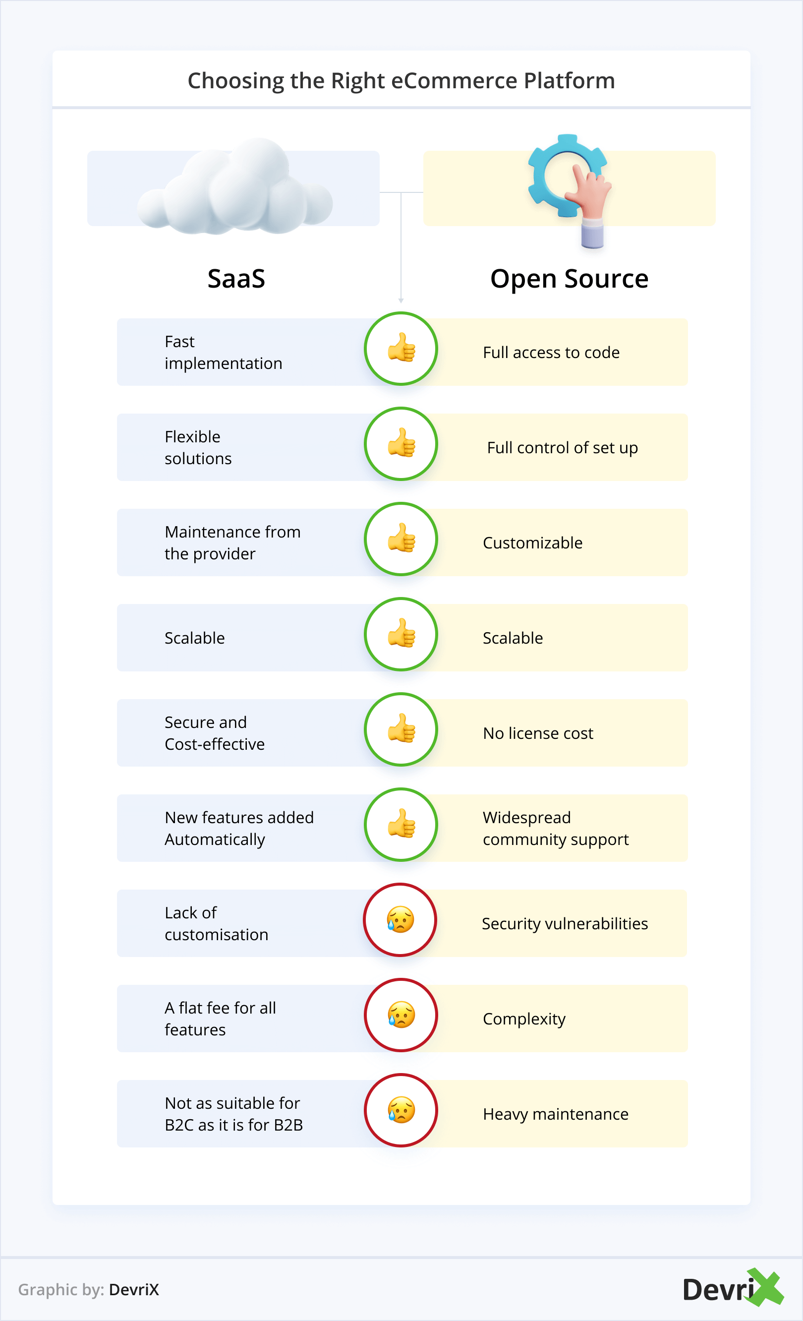 يجب أن تضع في اعتبارك أنه في كثير من الأحيان لا تسمح لك منصات التجارة الإلكترونية مفتوحة المصدر بإنشاء تصميم واجهة فريد. علاوة على ذلك ، كلما زاد عدد السمات والإضافات التي تقوم بتكديسها وكلما زاد تعقيدها ، زادت مخاطر أمان موقع الويب.