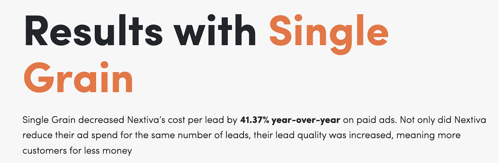 - احتفظت شركة Single Grain بشعار بسيط وعنوان رئيسي عريض يركز على النتائج.