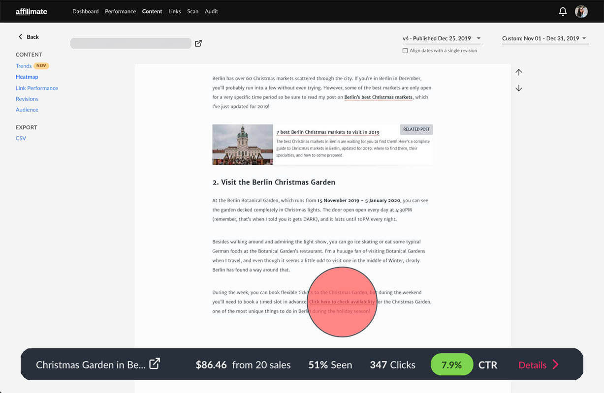الكثير من خيارات الخرائط الحرارية بطيئة جدًا ، لكن خرائط الحرارة في Affilimate لها ميزتان فريدتان: