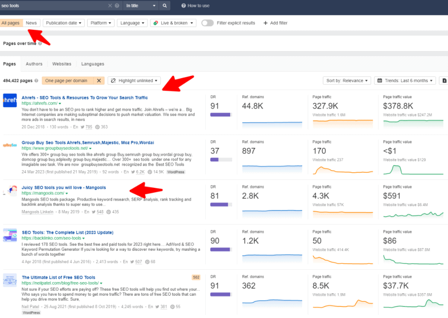 - تقدم Ahrefs مجموعة واسعة من أدوات تحسين محركات البحث ، مما يجعلها تستحق كل قرش تدفعه.