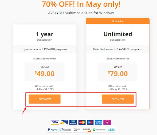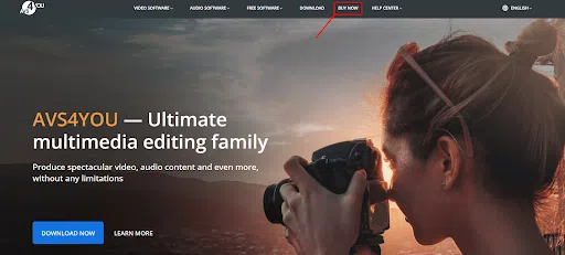 الخطوة - 1 : اذهب إلى الموقع الرسمي لـ AVS4YOU وانقر على "BUY NOW".