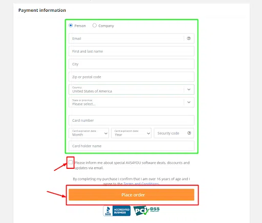 الخطوة - 4 : قم بالتمرير لأسفل ، واملأ تفاصيل الدفع المطلوبة ، وحدد المربع ، وانقر فوق "تقديم الطلب".