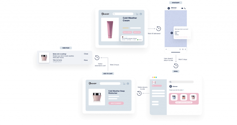 بمجرد إجراء المتسوقين لعملية شراء ، يجب أن يكون لديك خطة لمواصلة التفاعل معهم لتحويلهم إلى عملاء مخلصين. أفضل الممارسات هي بناء تجربة استثنائية بعد الشراء من خلال تنسيق رحلة متعددة القنوات. هذا يضمن أن جميع الرسائل مترابطة ، ولا توجد إمكانية لانقطاع الاتصال.