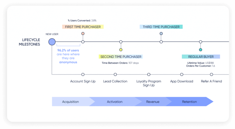 هذا يعني أنه يتعين على العلامات التجارية التعمق في بيانات المستهلكين الخاصة بهم لفهم سلوكيات المستهلكين بوضوح ، وما يريده المستهلكون بالفعل ، وما الذي يجعلهم متحمسين للشراء. بعد ذلك ، تحتاج العلامات التجارية إلى الاستفادة من هذه الأفكار لتصميم رحلات مخصصة للعملاء وتطوير استراتيجيات لاكتساب العملاء في كل نقطة اتصال في هذه الرحلات.