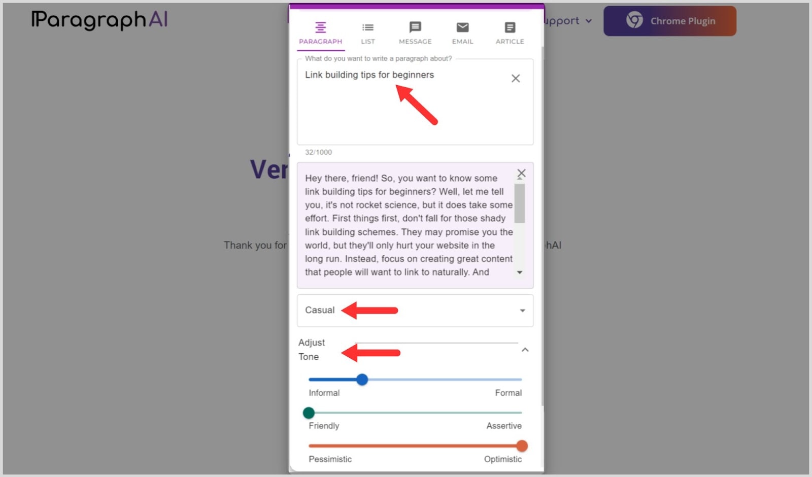 - إعدادات النغمة : اضبط النغمة والصياغة لتناسب الجمهور الذي تريده.