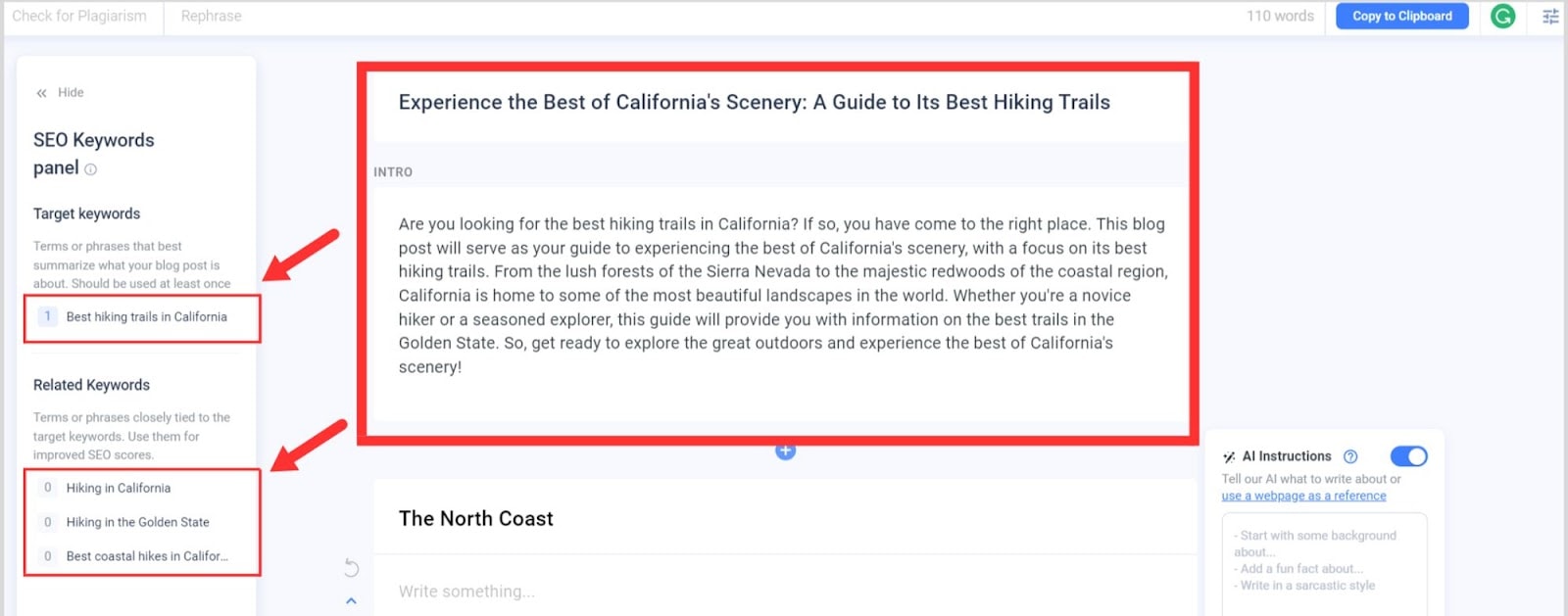 عندما تكون جاهزًا ، اضغط على زر إنشاء وشاهد بينما ينتج مساعد الكتابة بالذكاء الاصطناعي فقرة محسّنة لك.