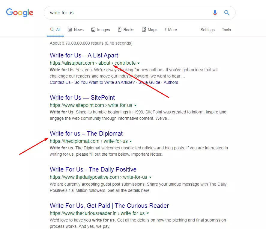 يجب عليك إجراء بحث مناسب قبل طرح فكرتك لنشرها كضيف. استخدم Google لاكتشاف مواقع الويب المهتمة بمشاركات الضيوف. استخدم مجموعات الكلمات الرئيسية مثل "اكتب لنا" و "ساهم فينا" و "إرسال مشاركات الضيف" لعرض نتائج مواقع الويب التي تقبل مشاركات الضيف.