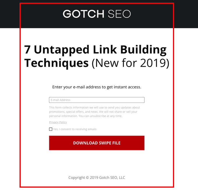 تتمثل إحدى طرق البدء في جمع البيانات حول المستهلكين في إضافة صفحة ضغط إلى الصفحات المهمة على موقع الويب الخاص بك. تم تصميم صفحة الضغط لغرض بسيط هو جمع اسم العميل المحتمل وعنوان بريده الإلكتروني.