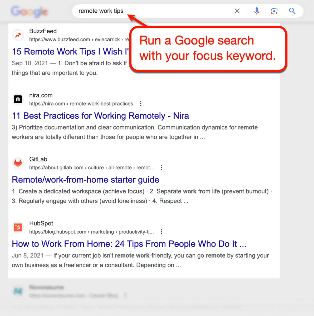 على سبيل المثال، يمكنك استخدام أفكار الكلمات الرئيسية الثانوية التالية لكتابة منشور أكثر شمولاً حول "نصائح العمل عن بعد".