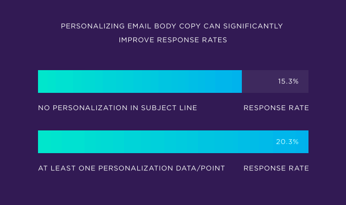 لأن رسائل البريد الإلكتروني الشخصية تحقق نسبة نقر إلى ظهور أفضل! وجدت دراسة حديثة أجراها Backlinko أن الرسائل الشخصية تتلقى ردودًا أكثر بنسبة 32.7٪ من الرسائل غير المخصصة.