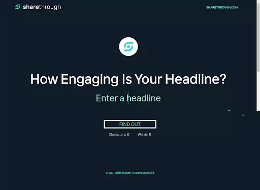 يتيح لك Sharethrough إنشاء موضوع يجذب الانتباه بناءً على المشاركة ودرجة الانطباع. يمكنك التركيز على عدد الأحرف وعدد الكلمات أثناء استخدام الأداة المجانية.
