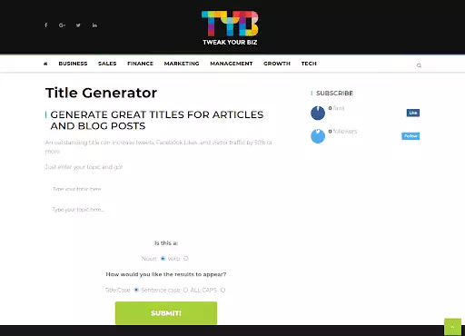 يعد Tweak Your Biz منشئ عناوين للمقالات ومنشورات المدونات.