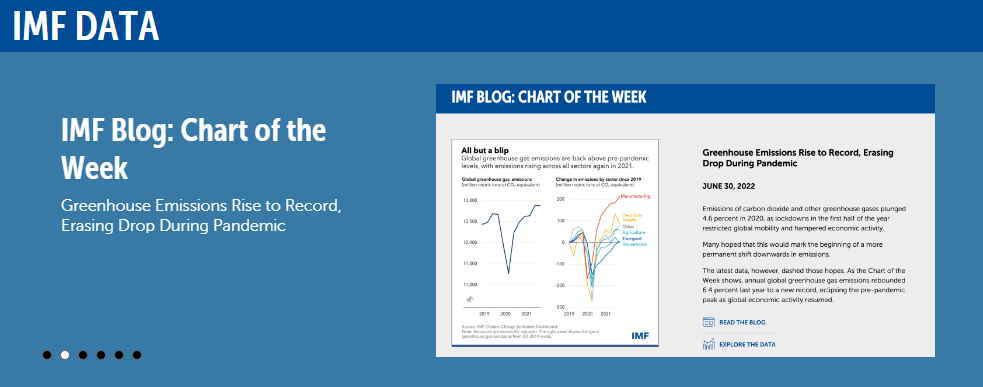 تسهل البيانات الاقتصادية لصندوق النقد الدولي العثور على معلومات مفيدة حول اقتصاديات العالم. يوفر هذا الموقع القيم تقارير اقتصادية إقليمية متعمقة وإحصاءات اقتصادية دولية وغير ذلك الكثير.