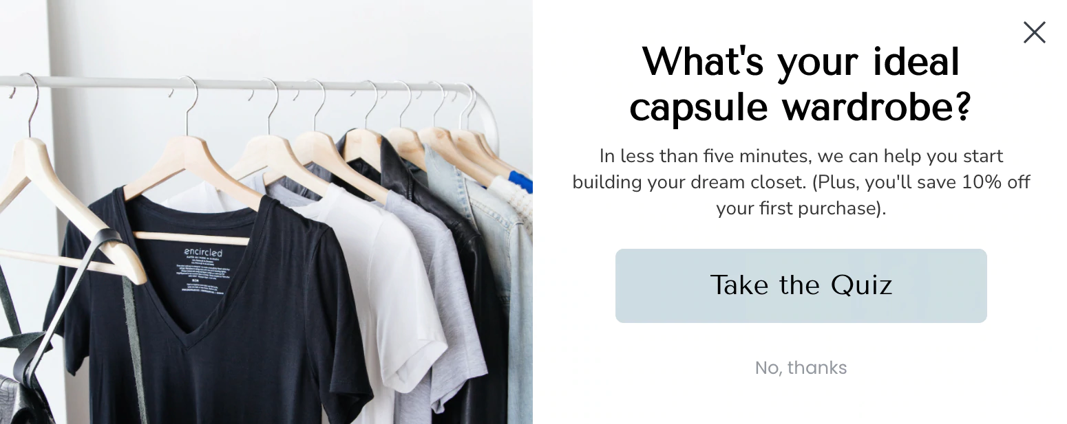 تطالب Encircled ، وهي علامة تجارية بطيئة للأزياء تركز على الملابس المستدامة ، زوار الموقع على الاشتراك في قائمتهم البريدية من خلال مطالبتهم بالإجابة على استبيان يرسل لهم ملفهم الشخصي عن الأزياء.