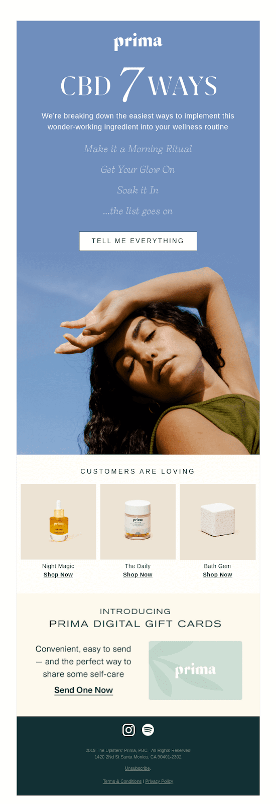 رسائل البريد الإلكتروني التي تقر بهذه الرغبات المتنوعة تثقف الأشخاص حول الاختلاف في هذه الرغبات ، مثل CBD مقابل THC ، وحتى أفضل طريقة لاستخدامها للمستخدمين لأول مرة ، كلها أفكار تستحق الدراسة اعتمادًا على تفضيلات جمهورك.