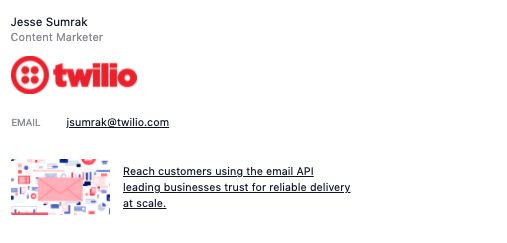 فكر في الوقت الذي تقضيه في تصميم بطاقات العمل الخاصة بك. أردت التأكد من أنك عثرت على الصورة المثالية ومعلومات الاتصال و CTA - افعل الشيء نفسه مع توقيع بريدك الإلكتروني.