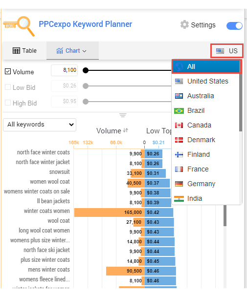 مستكشف الكلمات الرئيسية الخاص بهم مثير للإعجاب أيضًا؛ فهو يقدم نظرة ثاقبة حول كيفية بحث العملاء عن منتجاتك أو خدماتك. يمكنك الاطلاع على أداء مؤسستك في عمليات البحث المحلية والوطنية والحصول على درجة رؤية دقيقة للبحث. بالإضافة إلى ذلك، يمكنك حفظ قوائم الكلمات الرئيسية لاستخدامها في المستقبل.