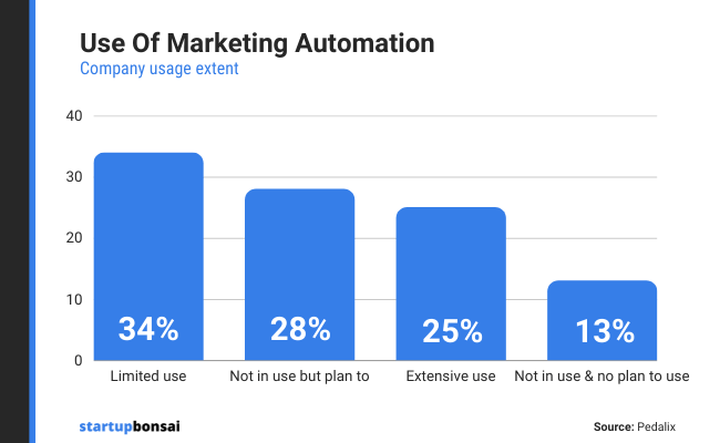 34% من الشركات تستخدم أتمتة التسويق، على الأقل بدرجة محدودة: