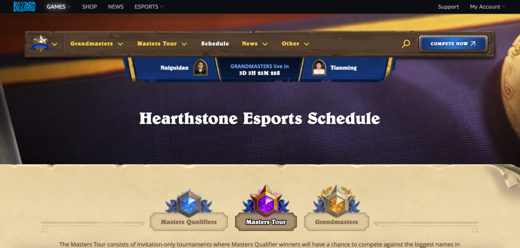 تتكون سلسلة من البطولات من بطولة 2022 Masters Tour ، والتي تجمع أفضل لاعبي Hearthstone في جميع أنحاء العالم للقتال من أجل حصتهم في محفظة الجوائز واللقب اللامع لبطل Masters Tour. يتم لعب جميع المباريات عبر الإنترنت باستخدام تنسيق 4-deck ، وأفضل خمسة تنسيق Conquest.