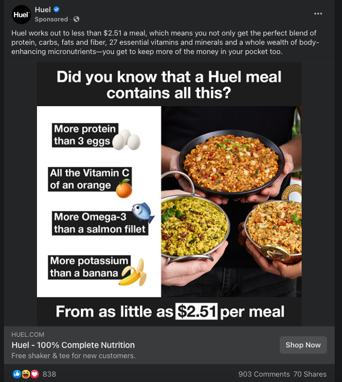 لاحظ هذا الإعلان بواسطة Huel ، واحد به: