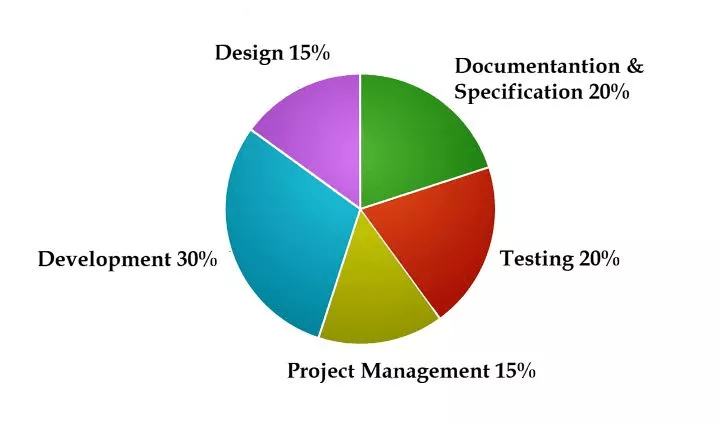 هذا المخطط الدائري هو تقييم تقريبي. في بعض التطبيقات ، يأخذ قسم التصميم ما يصل إلى 50٪ من التكلفة الإجمالية. إذا كنت تبحث عن جذب المزيد والمزيد من المستخدمين ، فأنت بحاجة إلى التركيز على التصميم المعقد باستخدام الرسوم المتحركة. بشكل عام ، من الصعب جدًا رسم تقدير لجزء التصميم من التطبيق.