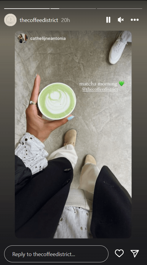 يمكنك إعادة نشر UGC على حسابك ووسم المنشئ ، مما سيساعد في بناء علاقات مع متابعيك. من الممارسات الشائعة عرض المحتوى الذي ينشئه المستخدمون على قصص Instagram. هذه طريقة ممتازة لمنح المصداقية لمنشئ المحتوى والاستفادة من الشهادة.
