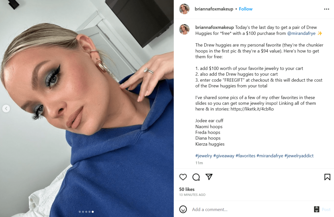 عند التعاون مع المؤثرين ، من الضروري التأكد من أن الشراكة تقدم قيمة لكل من المؤثر وعلامتك التجارية. يمكنك تحقيق ذلك من خلال المنشورات الدعائية أو مواضع المنتجات أو الهبات أو عمليات التعاون في المحتوى.