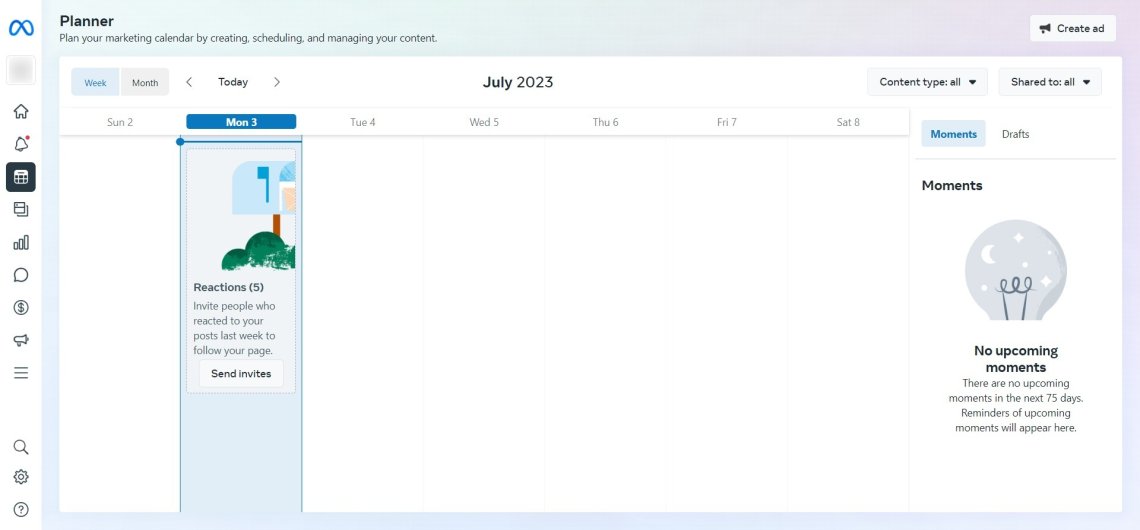 لهذا الغرض ، يمكنك استخدام مخطط Instagram المتاح في Meta Business Suite.