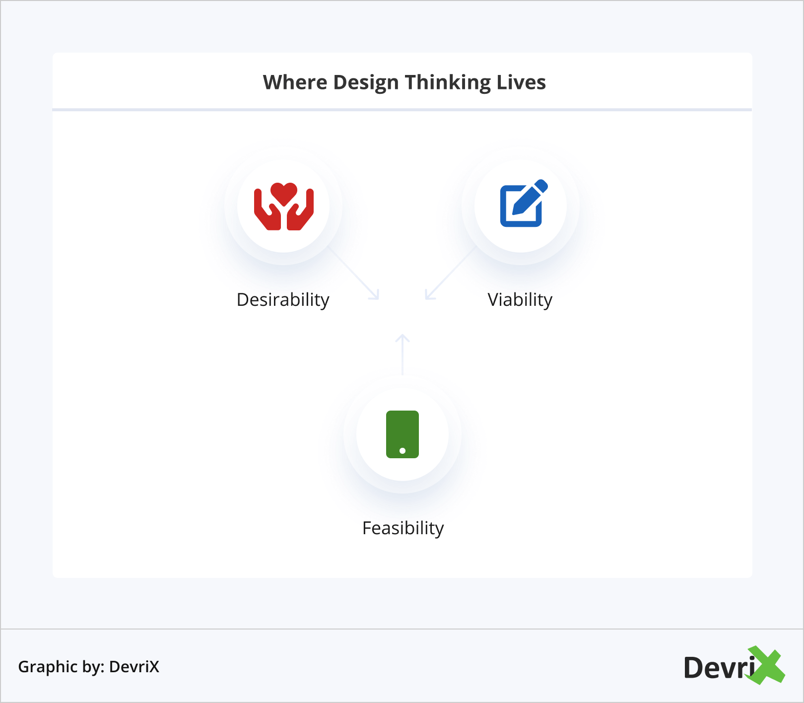 تعني إدارة الابتكار من خلال التفكير التصميمي تحقيق التوازن بين احتياجات الإنسان والقدرات التقنية والجدوى الاقتصادية. إنها عملية استكشاف الأفكار والقيود المتعارضة ، من أجل إيجاد الأسئلة الصحيحة لطرحها واكتشاف حلول مبتكرة لاختبارها.