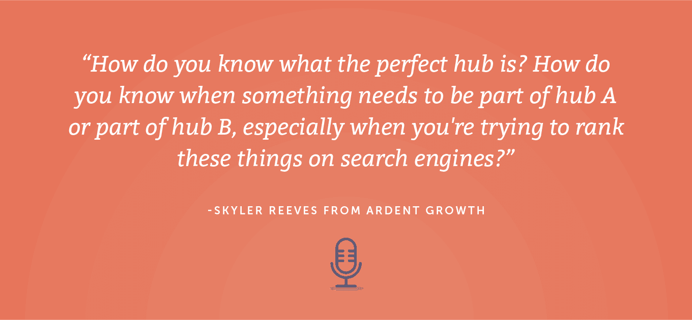 يمكنك التفكير في الأمر على أنه مقدمة أو موضوع شامل لاستراتيجية المحتوى وتسويق المحتوى. بن: بالتأكيد. منطقي. ما الذي دفعك إلى هذا الطريق لمتابعة ذكاء المحتوى كنظام؟ ما الذي دفعك حقًا إلى الانخفاض في هذا الاتجاه؟ سكايلر: أود أن أقول إن جزءًا كبيرًا منه كان المشكلات التي كنا نواجهها والأسئلة التي أردنا إجابات عليها. خلفيتي في علوم الكمبيوتر والهندسة. دخلت في عالم تسويق المحتوى وتحسين محركات البحث وأشياء من هذا القبيل. كان هناك الكثير من الحديث خاصة بسبب HubSpot من عام 2017 عندما تحدثوا عن نموذج المحور والتحدث هذا. كل هذا بدا جيدًا. إنه إطار نظري جميل ، لكننا كنا دائمًا نحاول الإجابة على هذا السؤال حول كيف تعرف ما هو المحور المثالي؟ كيف تعرف متى يجب أن يكون شيء ما جزءًا من المحور أ أو جزءًا من المحور ب خاصة عندما تحاول ترتيب هذه الأشياء في محركات البحث؟