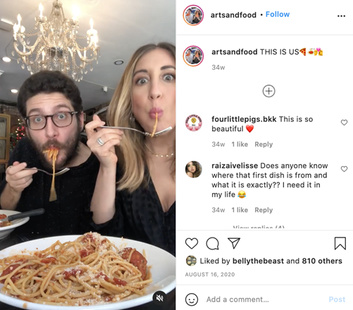 قام ثنائي الطعام والأبوة والأمومة ، Dayna و Brian Lee ، المعروفان باسمartsandfood ، بنشر مقطع فيديو "This IS US" على Instagram Reels يلخص تمامًا ما يدوران حوله. الفيديو عبارة عن مونتاج يعرض أفضل لحظات الطعام والسفر. يمكن لأي شخص يتعثر في الفيديو أن يعرف بسهولة ما يمكن توقعه إذا قرر متابعةartsandfood.