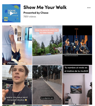 باتباع مفهوم تحديات TikTok ، يجب أن يستخدم Instagram Reel Challenge علامة تصنيف. فكر في علامة تصنيف يمكن ربطها بعلامتك التجارية ولكن يمكن استخدامها أيضًا بشكل طبيعي. كان أحد أنجح تحديات العلامة التجارية هو #ShowMeYourWalk Challenge من Chase Bank.