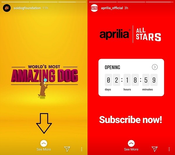 ميزة أخرى هي أن جميع روابط Instagram Stories غير مرئية ، فهي مخفية تحت خيار "See More" أسفل الصفحة