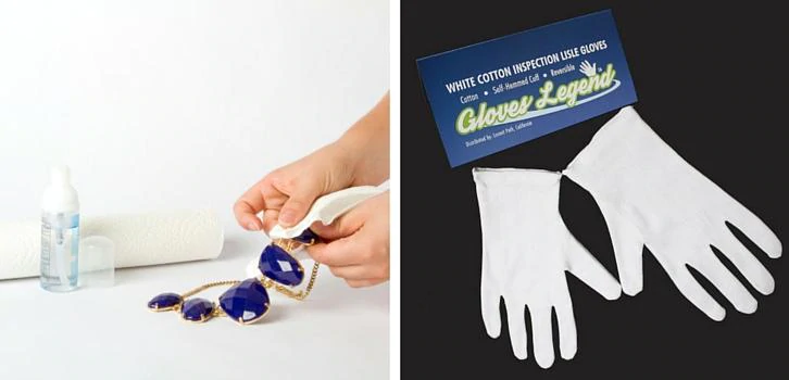 امسح مجوهراتك في كل مرة تلمسها. قد يؤدي ارتداء القفازات القطنية إلى توفير الوقت وإعادة التشذيب.
