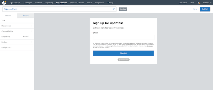 يتيح لك Constant Contact تغيير الخط وصورة البانر ولون الخلفية و ... هذا كل ما في الأمر. تقتصر الحقول على مربعات الاختيار القياسية للاسم الأول واسم العائلة والشركة وما إلى ذلك ... يمكنك إنشاء رمز الاستجابة السريعة الذي يرتبط بنموذج التسجيل الخاص بك ، وهو أمر رائع جدًا.