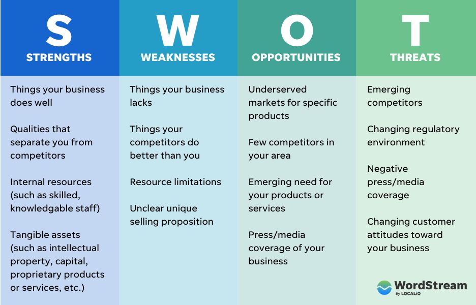 - قم بإجراء تحليل SWOT. يتطلب منك تحليل SWOT تقييم نقاط القوة والضعف والفرص والتهديدات في عملك. من خلال هذا التمرين ، يمكنك معرفة ما قد ينقص عملك ، والعثور على شركة تابعة تعمل على سد هذه الفجوة.