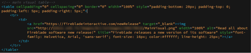 نظرًا لأن كثافة البكسل لكل شاشة Retina تقارب ضعف كثافة الشاشة العادية ، لمنع حدوث تأثير محبب ، ستحتاج إلى مضاعفة حجم الصور . على سبيل المثال ، إذا كانت الصورة في البريد الإلكتروني ذات أبعاد 250 × 145 بكسل (على سبيل المثال ، <img height = ”250 ″ width =” 145 ″) ، فأنت بحاجة إلى استخدام صورة 500 × 290 بكسل.
