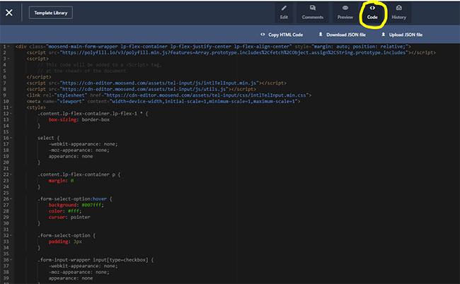 وفي وضع Code ، يمكنك تحرير كود HTML وJSON مباشرةً.