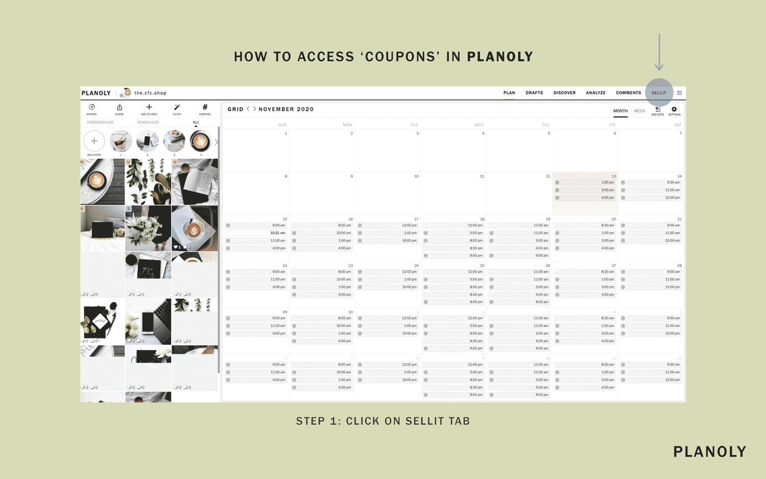 لا يوجد وقت أفضل من موسم العطلات لتجربة البيع ! استخدم رمز القسيمة sellit2020 عند الخروج في PLANOLY لتحصل على أول شهر من البيع مجانًا! * صالح حتى 31 ديسمبر 2020 لأول 500 عملية استرداد.