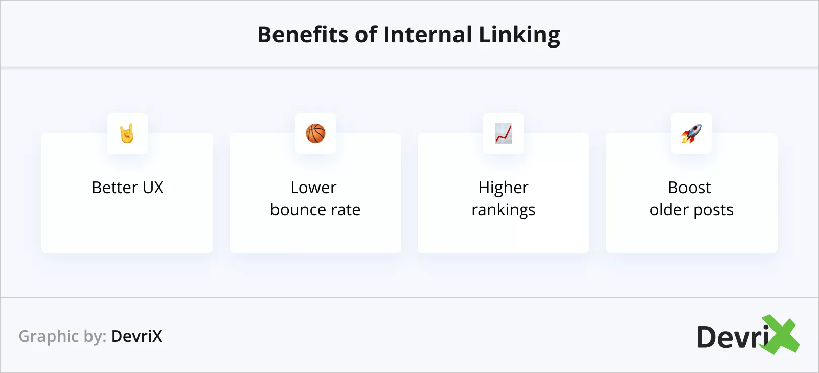 - معدل ارتداد أقل . عادةً ما يغادر المستخدم موقعك عندما لا يتمكن من العثور على المعلومات التي يبحث عنها في صفحاتك. وبالتالي ، عندما تضع الروابط الصحيحة ، يمكن للمستخدمين البقاء على موقع الويب الخاص بك والعثور على ما يريدون ، دون الحاجة إلى الذهاب إلى مكان آخر.