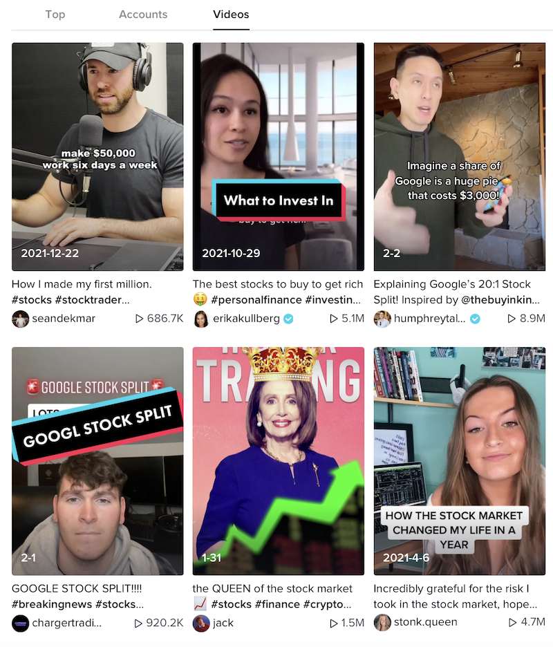 جعلت وسائل التواصل الاجتماعي التعليم الاستثماري أكثر سهولة. يجمع المؤثرون الماليون في "Stock Tok" آلاف المتابعين. وفي استطلاع جديد ، قال 41٪ من المستثمرين الذين تتراوح أعمارهم بين 18 و 24 عامًا إنهم يلجأون إلى منصات التواصل الاجتماعي مثل Reddit و Instagram و TikTok للتعلم.