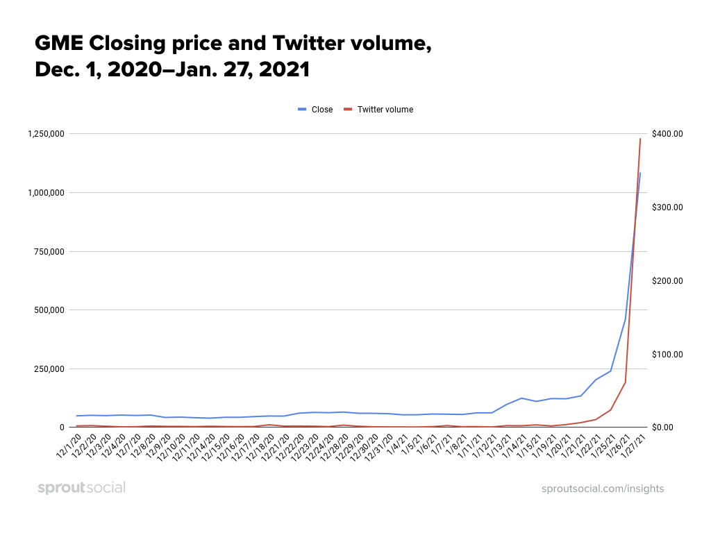 عندما انفجر سهم GameStop في عام 2021 ، زادت المحادثات التي تشير إلى الشركة و r / WallStreeetBets بنسبة 2،805٪ على مدار أسبوع - وليس بين عشية وضحاها.