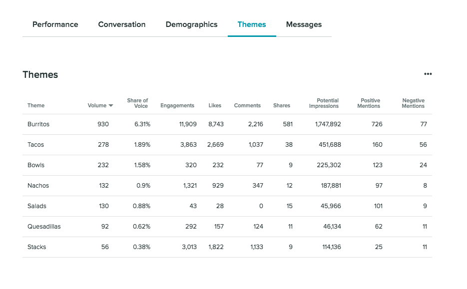 على سبيل المثال ، استخدم امتياز مطعم أداة الاستماع الاجتماعي الخاصة بـ Sprout لتحديد عنصر القائمة الذي سيتم عرضه في حملة جديدة. بعد تحليل الموضوعات في المحادثات حول علامتهم التجارية ، وجد الامتياز أن الناتشوز لم تتم مناقشته بشكل متكرر مثل العناصر الغذائية الأخرى ، ولكن لديهم أعلى نسبة من الإشارات الإيجابية مقارنة بالأطباق الأخرى. استخدم الامتياز تلك البصيرة لإنشاء محتوى جديد يروج للناتشو مع العلم أن عملائهم سيكونون سعداء ومشاركين.