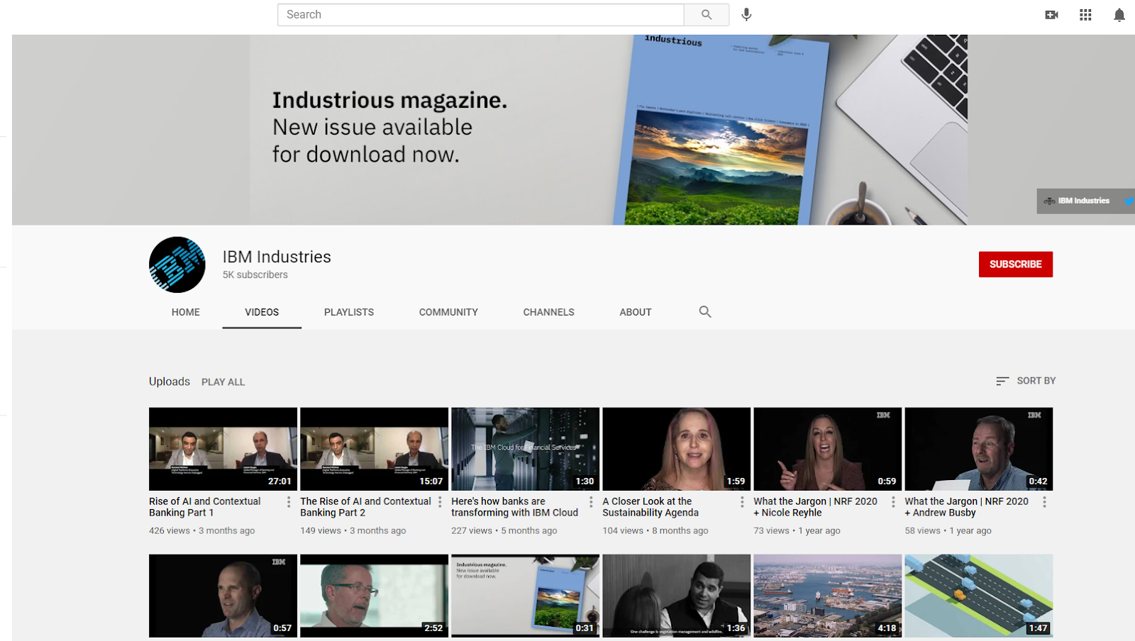 تستضيف IBM قناة على YouTube وتنشر بانتظام محتوى يتراوح من سلسلة "What the Jargon" إلى التحليل المتعمق لاتجاهات الصناعة والمواضيع. معظم مقاطع الفيديو الخاصة بها قصيرة ولكنها غنية بالمعلومات. من الناحية المثالية ، تريد الاحتفاظ بمقاطع الفيديو الخاصة بك ما بين 7 إلى 15 دقيقة حسب المحتوى. إذا كنت تنشئ مقطع فيديو مخصصًا للتسويق فقط ، فاحتفظ به في أقل من دقيقتين.