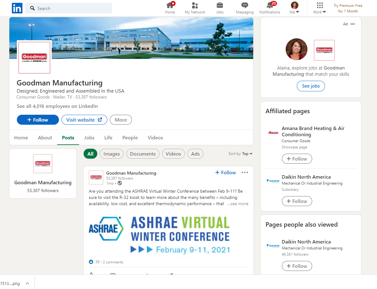 يسلط منشور LinkedIn هذا من Goodman Manufacturing الضوء على طريقة فعالة لتعزيز حضور الشركة في مؤتمر صناعي. بينما تستخدم الشركة LinkedIn للترويج للمؤتمر ، فهي دعوة للآخرين الذين قد يكونون في المؤتمر للتواصل. كما يشجع المتخصصين الآخرين في الصناعة على حضور المؤتمر.