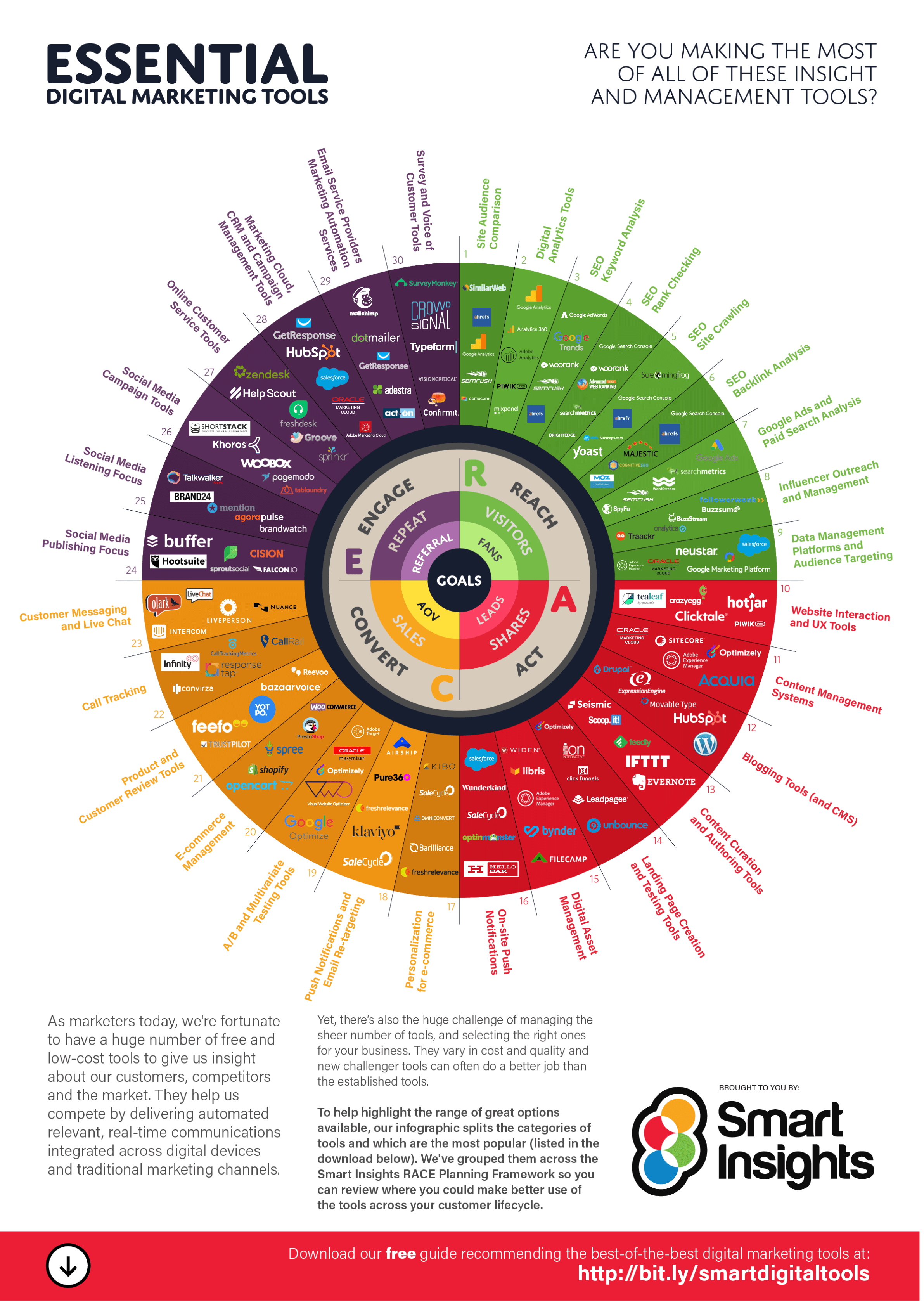 نظرًا لأهمية التسويق عبر وسائل التواصل الاجتماعي عبر كل جزء من RACE ، لدينا مجموعة أدوات منفصلة تغطي كيفية إنشاء استراتيجية وسائط اجتماعية وأدلة عملية "أكثر ذكاءً" لكل من منصات الوسائط الاجتماعية الرئيسية.