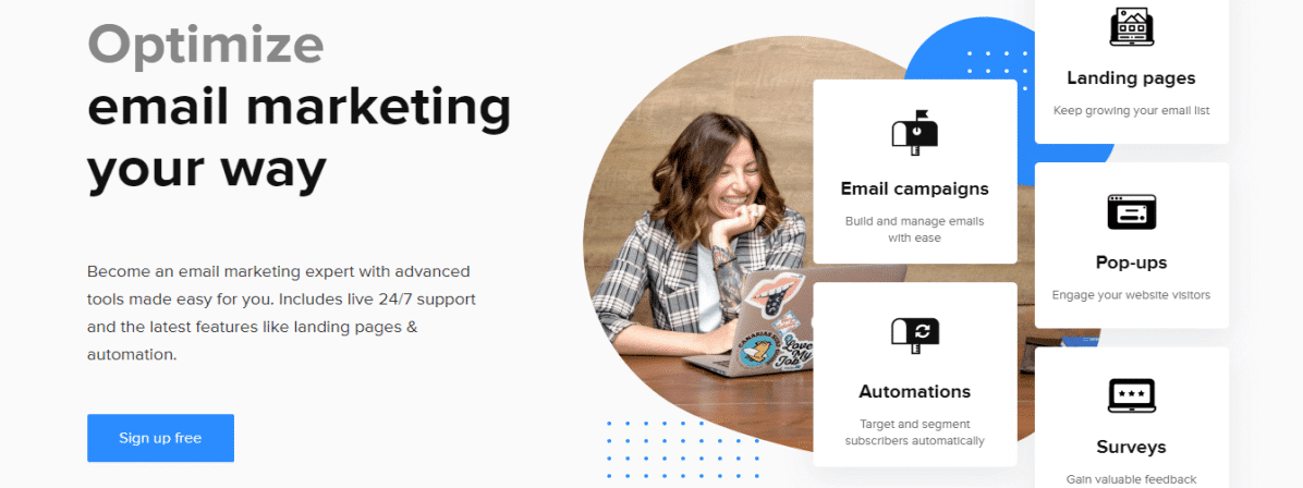 3. Mailerlite: برنامج رائع يحتوي على عدد كبير من الميزات التي تتزامن تمامًا مع متاجر التجارة الإلكترونية ، يعد Mailerlite مثاليًا لأولئك الذين يرغبون في أن يتفاعل عملاء التجارة الإلكترونية معهم عبر رسائل البريد الإلكتروني مباشرةً. ميزات الصفحة المقصودة الخاصة بهم لا مثيل لها ، مما يجعل المزيد من العملاء يسجلون الدخول ويزيدون قائمة البريد الإلكتروني.