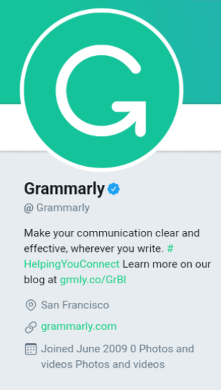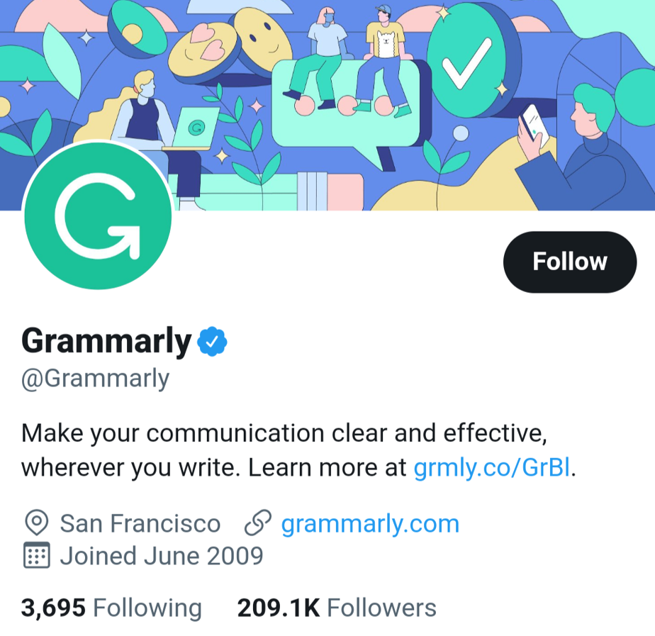 للرجوع إليها ، تحقق من التغييرات في ملف تعريف Grammarly على Twitter بين 2020 و 2022. إصدار 2020 ضئيل ومباشر ولكنه فعال.